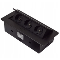 Gniazdo wpuszczane w blat z płaskim frezowanym rantem 3x2P+Z czarne OR-AE-1336/B