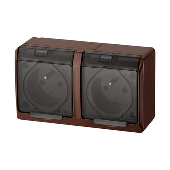 Gniazdo podwójne bermetyczne z uziemieniem brązowy IP44 HERMES 0322-05