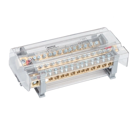 Blok rozdzielczy 4-polowy 160A 1000V 1x50mm2 + 4x35mm2 / 9x16mm2 Morek MAB4161A18 – najwyższa wydajność w rozdziale energii dla wymagających instalacji 3-fazowych z przewodem neutralnym