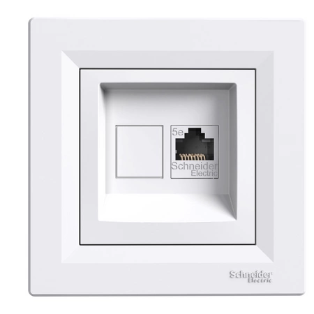 Wyobraź sobie wnętrze, w którym wszystko działa płynnie: szybki internet, czysta aranżacja, przemyślane detale. **EPH5000121** z serii **Asfora** to **pojedyncze gniazdo komputerowe RJ45**, zgodne z kategorią 5e – idealne do domowych i biurowych instalacji sieciowych. Dzięki śnieżnobiałemu wykończeniu i subtelnej formie, harmonijnie wtapia się w jasne ściany i nowoczesne wnętrza, oferując jednocześnie **stabilne, szybkie połączenie z siecią LAN**.