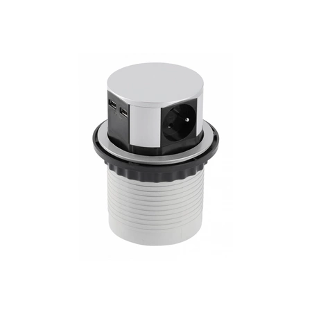Gniazdo meblowe wpuszczane 100 mm 3-gniazda z/u 2xUSB 2,4A aluminium GTV AE-BPW3U100U-53 – energia i ładowanie w nowoczesnym stylu