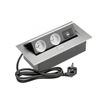 Gniazdo meblowe wpuszczane 2-gniazda z/u 2xUSB aluminium GTV AE-PBU2GU-53 – kompaktowe i funkcjonalne