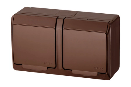 Gniazdo podwójne natynkowe hermetyczne brązowe IP44 HERMES 0322-06 ELEKTRO-PLAST – naturalna estetyka i solidna ochrona