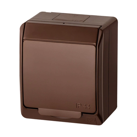 Gniazdo pojedyncze natynkowe hermetyczne z uziemieniem IP44 brązowy HERMES 0321-06