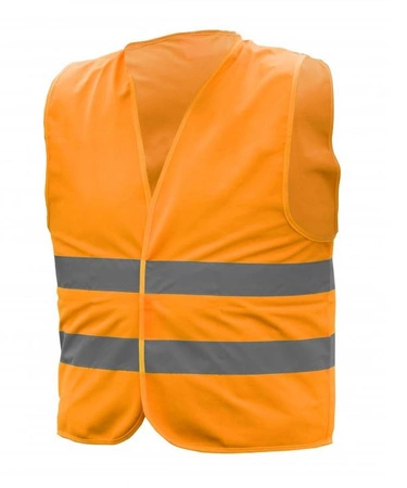 Kamizelka ostrzegawcza Hogert ORLA HT5K232-3XL w rozmiarze XXXL / 58 to profesjonalne rozwiązanie dla osób noszących większe rozmiary, które pracują w warunkach o ograniczonej widoczności. Dzięki intensywnemu pomarańczowemu kolorowi fluorescencyjnemu oraz dwóm poziomym pasom odblaskowym, zapewnia bardzo dobrą widoczność w dzień i w nocy – zgodnie z europejską normą EN ISO 20471.