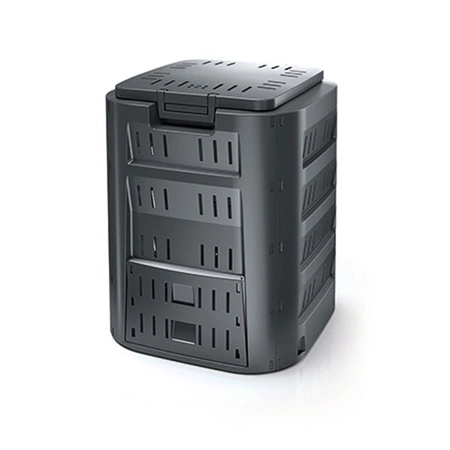 Jego czarny kolor pozwala na utrzymanie odpowiedniej temperatury wewnętrznej, co sprzyja efektywnemu rozkładowi materiałów organicznych. System łatwego otwierania bocznych klap zapewnia wygodny dostęp do gotowego kompostu.