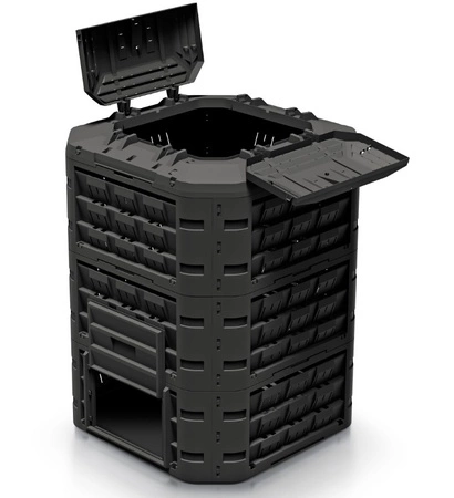 - Dostęp: górna pokrywa z zamkiem oraz dwie dolne zasuwy umożliwiające wygodne wyjmowanie kompostu :contentReference[oaicite:6]{index=6}