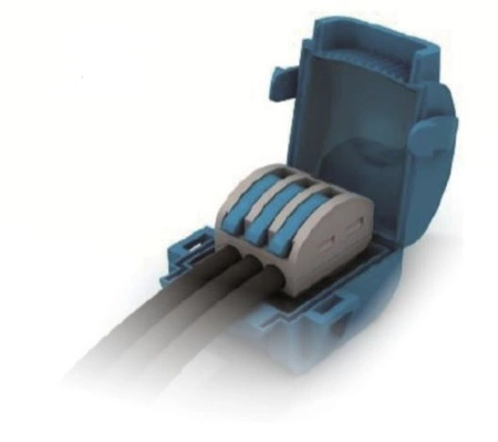 - Zintegrowana złączka 3×0,2–4 mm – umożliwia łączenie przewodów o różnych przekrojach.