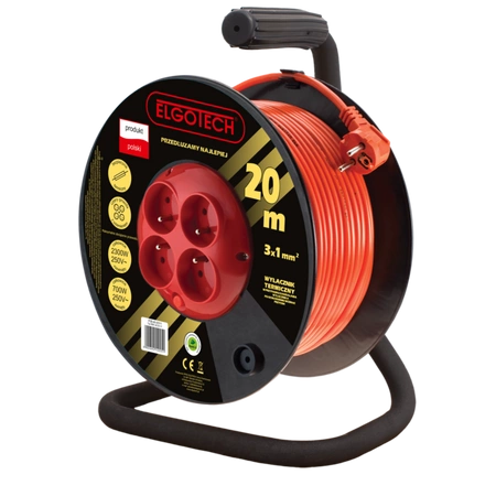 Przedłużacz bębnowy Elgotech PZB-40-20Y/1 – 20 m, OMY 3×1 mm2, z uziemieniem
