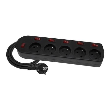 - Typ: przedłużacz z wyłącznikami, 5-gniazdowy, z uziemieniem