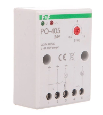 Przekaźnik czasowy z opóźnionym odpadaniem 10A 1-15min 24V AC/DC F&F PO-405