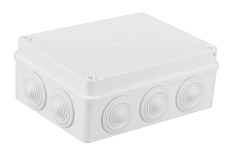 Szukasz puszki, która pomieści niezbędne elementy instalacji, wygląda estetycznie i skutecznie chroni przed warunkami zewnętrznymi? **PAWBOL S-BOX 406B** to **hermetyczna puszka natynkowa o wymiarach 190×140×70 mm**, w eleganckim **białym kolorze**, idealna do montażu na jasnych elewacjach, wewnątrz budynków i w przestrzeniach technicznych. Z **klasą szczelności IP65**, zapewnia niezawodną ochronę przed pyłem, wilgocią i deszczem – nawet w trudnych warunkach.