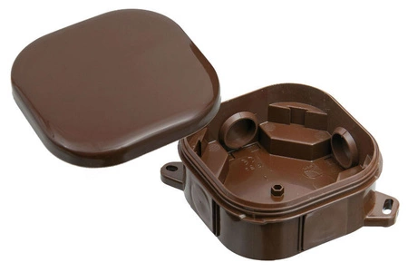 Szukasz dyskretnego rozwiązania do instalacji natynkowej w ciemnych wnętrzach lub na elewacji? Pawbol A.0018BR to **hermetyczna puszka łączeniowa o klasie IP44**, wykonana z wytrzymałego tworzywa w eleganckim, brązowym kolorze. Dzięki swoim kompaktowym wymiarom **92 × 92 mm**, sprawdzi się zarówno w systemach domowych, jak i przemysłowych – oferując ochronę przed kurzem i wilgocią oraz szybki montaż. Idealna do montażu na zewnątrz w strefach zadaszonych, np. pod okapem dachu, na werandach, altanach, jak również w garażach, piwnicach i budynkach gospodarczych.