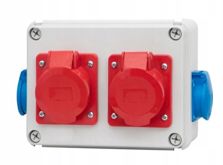 Model F3.0309 to najbardziej rozbudowana wersja rozdzielni w obudowie R-190. W porównaniu do modeli z pojedynczymi gniazdami (np. F3.0124), oferuje dodatkowe dwa gniazda 230V, które pozwalają na jednoczesną pracę zarówno ciężkich maszyn trójfazowych, jak i lekkiego sprzętu jednofazowego bez potrzeby stosowania dodatkowych przedłużaczy czy rozgałęźników.