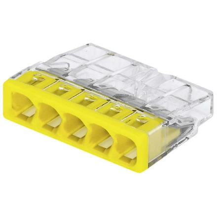 WAGO 2273-205 – szybkozłączka 5x do drutu 0,5–2,5 mm2 w kolorze żółtym – montaż bez kompromisów