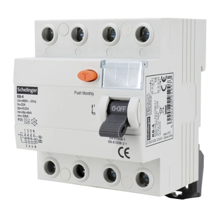 Wyłącznik różnicowoprądowy 4P 25A 30mA typ A SCHELINGER A03-K8-4-25-030 – niezawodna ochrona w instalacjach 3-fazowych
