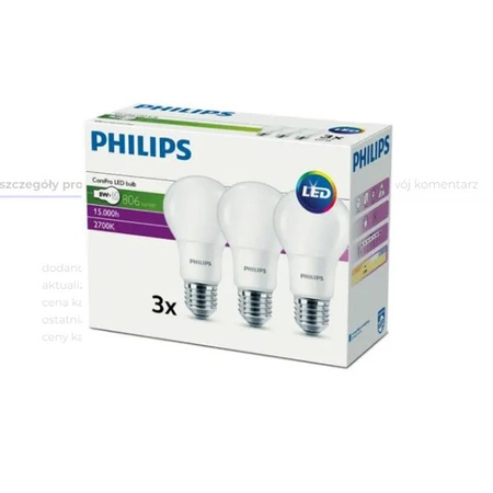 Żarówka LED 8W 60W 806lm 2700K A60 E27 3-pack Philips 929001234332