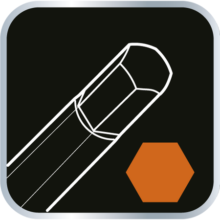 - Długa końcówka kulista – umożliwia odkręcanie i dokręcanie pod kątem do 25°,