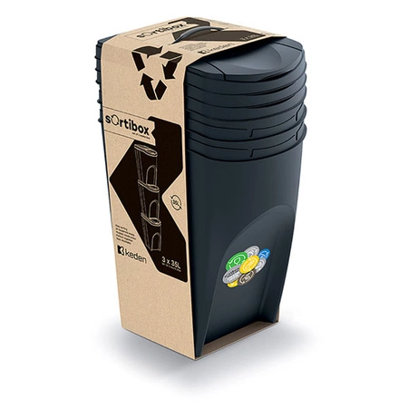 - The SORTI BOX Keden IKWB35S3-S411 Recycling Trash Bin Set is a practical solution for those committed to waste segregation. The set includes three 35-lit