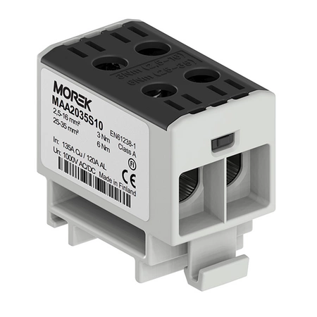 Złączka szynowa podwójna czarna 2x2,5-35mm2 Morek MAA2035S10 – kompaktowe i niezawodne łączenie przewodów zasilających