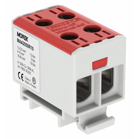 Złączka szynowa podwójna czerwona 2x1,5-50mm2 Morek MAA2050R10 – pewne i przejrzyste łączenie przewodów fazowych