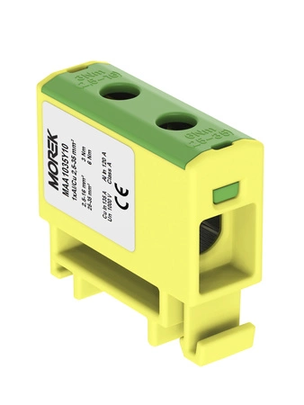 Złączka szynowa żółto-zielona 2,5-35mm Morek MAA1035Y10 – złączka szynowa, złączka elektryczna, 2,5-35mm